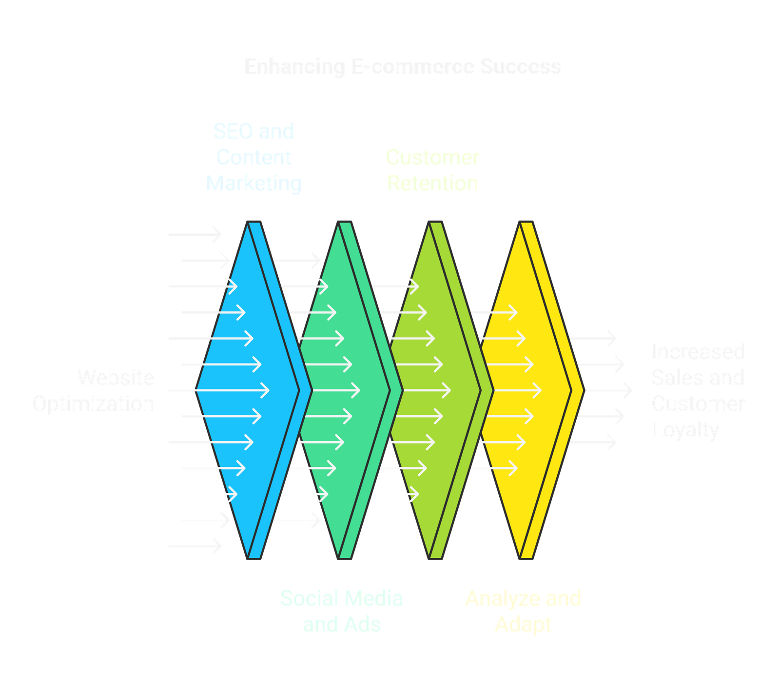 At Elevize, we specialize in providing end-to-end ecommerce services to help businesses thrive in the digital landscape. Here’s how we can help you achieve success online in six strategic steps: